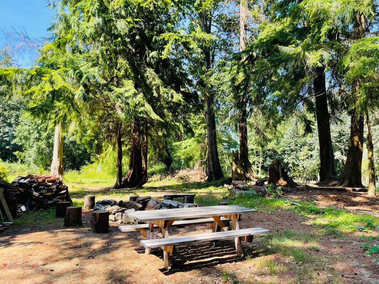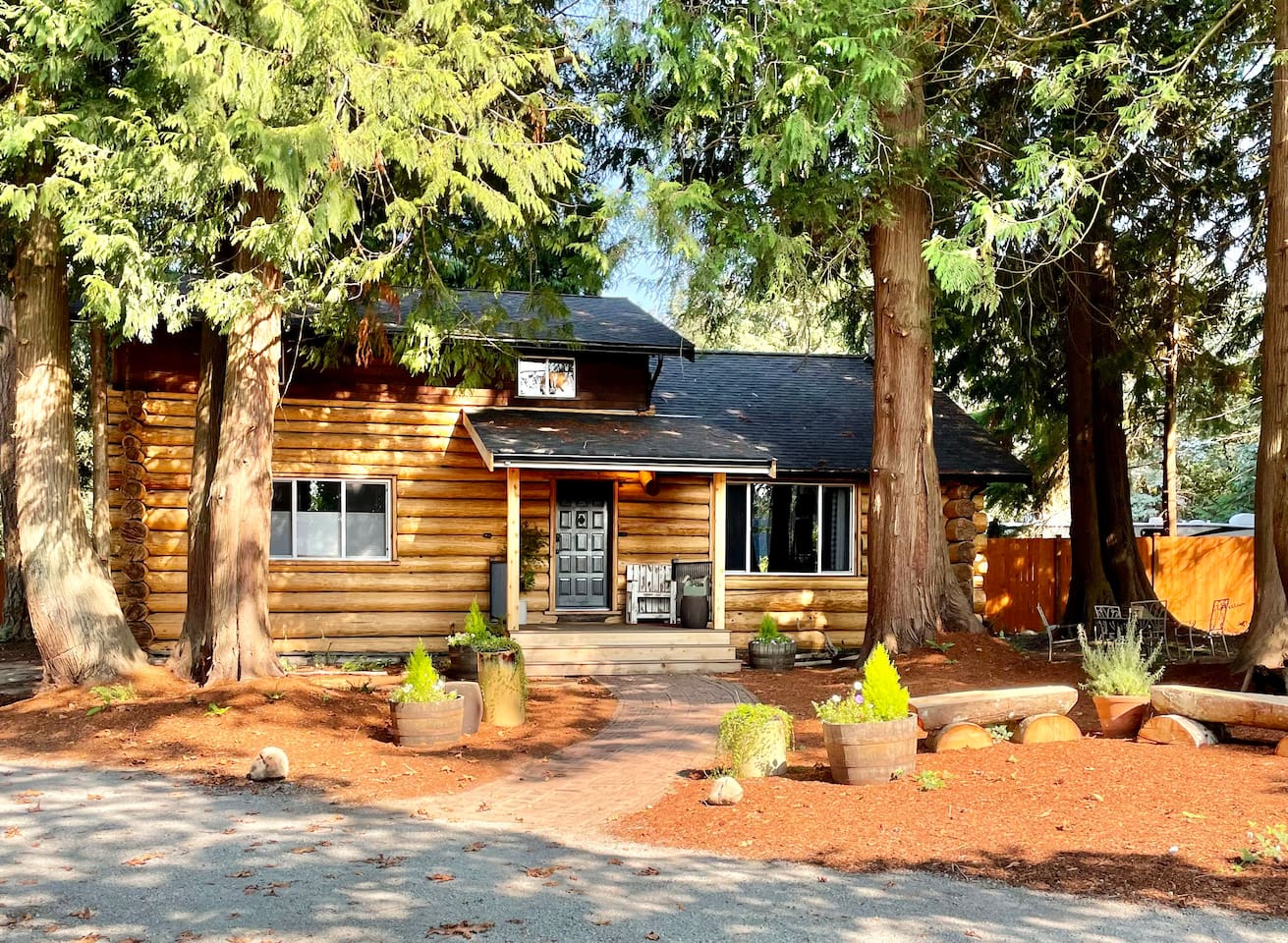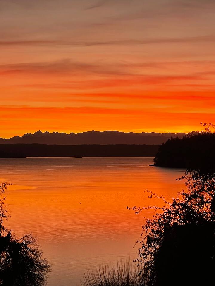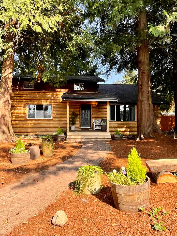 Take a cruise down Camano Drive and you will enjoy a tree lined street that takes you out of the hustle and bustle. Take a left at the yellow tractor and life starts to slow down immediately when you arrive at Camano Log House. A magical forest with beautiful trees and outdoor spaces. Lots of rustic charm, a few quirks - nicely remodeled for comfort and relaxation. Comfy couches for you to relax on while enjoying a lodge feel. Not far from a several beaches, State Parks, beautiful views, art and now you too get to enjoy island life! Lots of good times are ready for you on Camano Island.