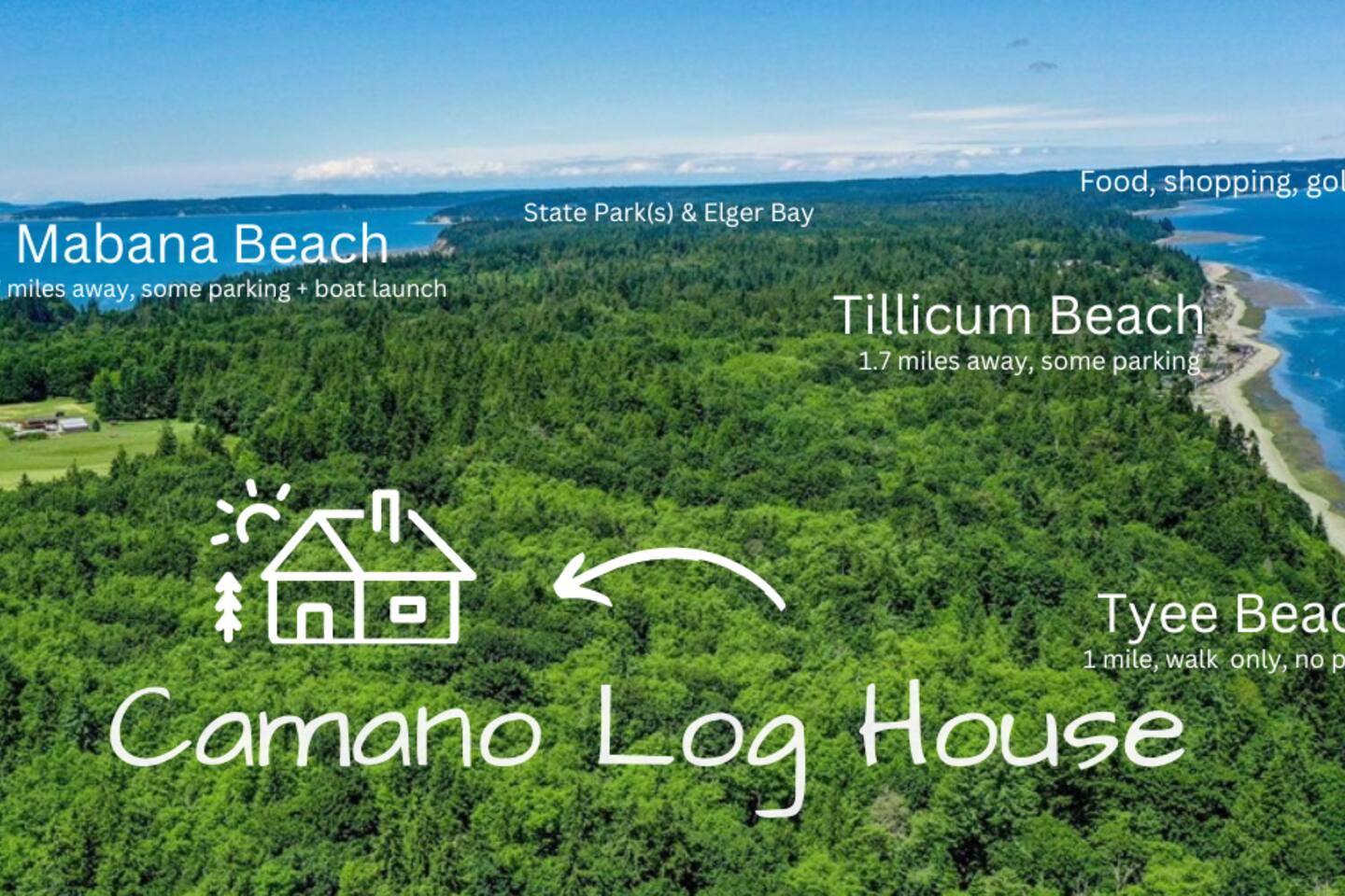 Handcrafted 3 bed, 2 bath log home where rustic beauty meets modern comfort. Wake to birdsong, wander to sandy shores, and watch sunsets through the evergreens. Minutes to Camano Island’s beaches, parks, and boat launches—yet a world away from hurry. Tillicum 1.5 mi, Mabana 1.3 mi, Seattle ~1.5 hrs. Gather Barn is available separately for events.