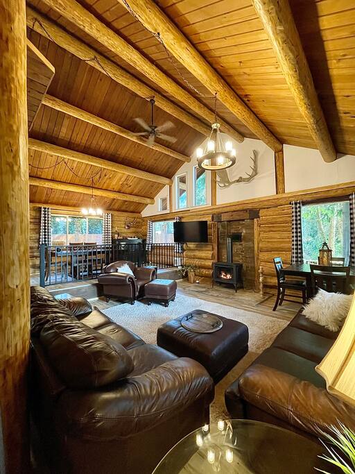 Take a cruise down Camano Drive and you will enjoy a tree lined street that takes you out of the hustle and bustle. Take a left at the yellow tractor and life starts to slow down immediately when you arrive at Camano Log House. A magical forest with beautiful trees and outdoor spaces. Lots of rustic charm, a few quirks - nicely remodeled for comfort and relaxation. Comfy couches for you to relax on while enjoying a lodge feel. Not far from a several beaches, State Parks, beautiful views, art and now you too get to enjoy island life! Lots of good times are ready for you on Camano Island.