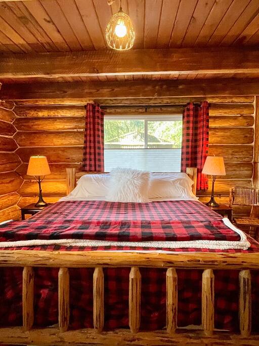 This renovated deluxe log cabin was built in the 1970's by hand. It sits on almost an acre of land with lots of beautiful trees. It has been lovingly restored to provide a wonderful relaxing lodge style experience while leaving some rustic charm. MAIN FLOOR... has a sunken living room, large open room with gorgeous logs, beams and hardwood floors. Relaxing comfy couches and leather chair with ottoman. Large dining area with "antler bar" area off the kitchen. BBQ on out the back "dutch" door. Outdoor pic-nic table by the campfire pit. Outdoor dining table and chairs in the trees. Large bathroom with laundry area, king bed in master bedroom with closet and chair. UPSTAIRS... has an open landing that has an extra single bed we call “the nook” and a reading chair with books we call “the library”. The futon chair folds down to a smaller bed. The “Tulip Room” has a queen bed and a 30 inch TV with a firestick. The “Tree House Room” also has a queen bed and a TV with a DVR. Nice brand new bathroom with shower. THINGS TO NOTE: We have an electric fireplace for ambiance - goals of having a propane wood stove in the next few months, possibly adding a hot tub in the future too. We have a TMOBILE hot spot. Works well for phones, tablets and streaming. Part of island life here is that the internet can be spotty at times. There are other location to visit for internet. (Internet is also weak in the IGA grocery shopping center, locals call this area "The Plaza". Internet works well at "Terry's Plaza" where Camano Commons & Bakery are located. We are on septic - and O N L Y a small amount of toilet paper can go down. Nothing else please. In the future we plan to use the large 1200 sf shop for art and music events. Perhaps a painting class, etc. Check back for more information as our plans continue to evolve. CamanoLogHouse.com